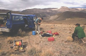 Fig. 92 Sorting wire and equipment to begin a resistivity / IP survey for a