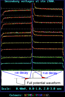 Decay voltages in IP surveys (measured during a time domain transmitter’s