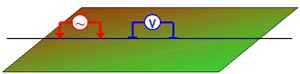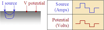 figure shows an example where the current electrode and potential