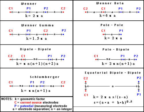 in 2D or 3D. The most common sounding configurations are the Wenner and