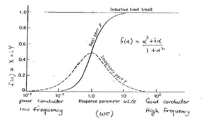 The body in which the induction is occurring can be represented as a circuit element with self-inductance \(L\) and a resistance \(R\). Through the laws of electromagnetic induction, the time varying currents that are set up in the conductor suffer a further lag