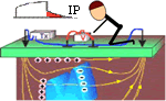 Some earth materials act like capacitors and build up internal charges when a current is passed through. The ability to accumulate this charge is called chargeability . An Induced polarization (or IP) survey measures secondary responses associated with chargeability. IP measurements can be made at the same time, and with the same equipment, as used for a DC resistivity survey. Clays, graphite, and sulphide minerals have large chargeabilty but small changes in chargeability can be detected when groundwater is contaminated with salt, hydrocarbons, or other materials. Data can be collected at the surface or in boreholes or tunnels.