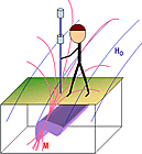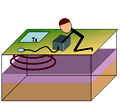 Time domain EM (TEM) methods are the same as FEM methods, except that the energy source (the current in a transmitter) is a transient signal instead of being at a fixed frequency. When the energy source is turned off instruments record the secondary fields that exist for a few micro- or milli-seconds following the source signal’s transition. Although the physics for FEM and TEM surveys is the same, the instrumentation to carry out the surveys is different. Like FEM surveys, each TEM measurement is usually treated as a sounding; many measurements must be carried out to produce many soundings, which may then be interpreted as a collection of soundings. TEM surveys can be carried out on the ground or from airborne platforms, and borehole TEM surveys are common for mineral exploration. Some TEM systems can produce information about ground as much as 300 or 400 meters deep, but most TEM surveys involve investigating only the first few 100 meters. As for all electrical and electromagnetic methods, TEM measurements yield information about variations in the earth’s electrical resistivity or its reciprocal electrical conductivity.
