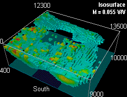 Figure 3 (supplied courtesy of Placer Dome Exploration) provides an example of regional information from an area surrounding the Mt Milligan copper porphyry deposit, located in central British Columbia. Geological trends can be discerned using this type of data, however, exploration for a specific deposit requires more detailed information about local subsurface distributions of rock types. Figure 3b shows anomalous strengths of the earth’s magnetic field for a small region of one ore body. Evidently there is a range of different rock types below the surface, but details of location, depth and magnetic susceptibility are difficult to determine directly using conventional methods.