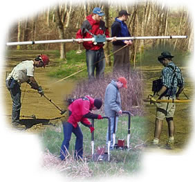 During a geophysical survey, energy is put into the earth and responses are recorded at the surface, in the air or in boreholes. Resulting data reveal information about the earth because the behavior of the energy within the ground is controlled by the distribution of the earth’s physical properties. For instance, one basic physical property is magnetic susceptibility, which describes a rock’s ability to become magnetized. This physical property provides information on rock type and structures because the rock’s magnetic susceptibility relates directly to mineral type, to the chemical alteration processes. A second important physical property is electrical conductivity, which quantifies a material’s ability to carry electrical current. Figure 2 illustrates one way that a geophysical survey can be carried out to provide information about the subsurface distribution of electrical conductivity.