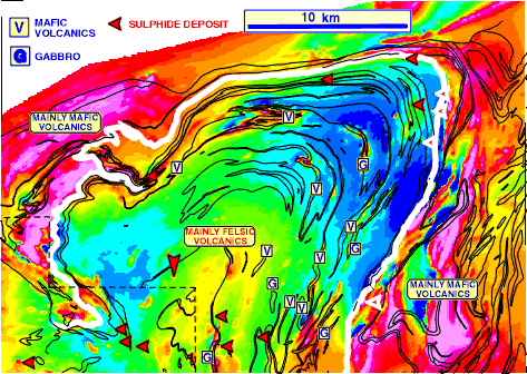 Fig. 2 Figure 3. Tetatouche Antiform - Total Magnetic Field, from “Airborne Geophysical Survey of the Bathurst Mining Camp”, Geological Survey of Canada website.¶