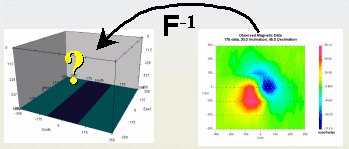 The goal of the inverse problem is to find a mathematical model of the earth that produced the field observations. That is “what subsurface physical property distribution caused the data that were observed at the surface?” Earlier inversion solutions involved characterizing the earth by a few prisms or layers and finding geometrical and physical properties of these simplified earth models.