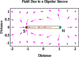 Fig. 115 Magnetic field lines generated by a postive and negative pole which form a dipole.¶